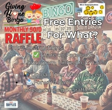The best part? Our free sweepstakes use the same fair, transparent drawing system as our raffles. Winners are selected live at Giving Hope Bingo events with dice-based, verifiable draws.